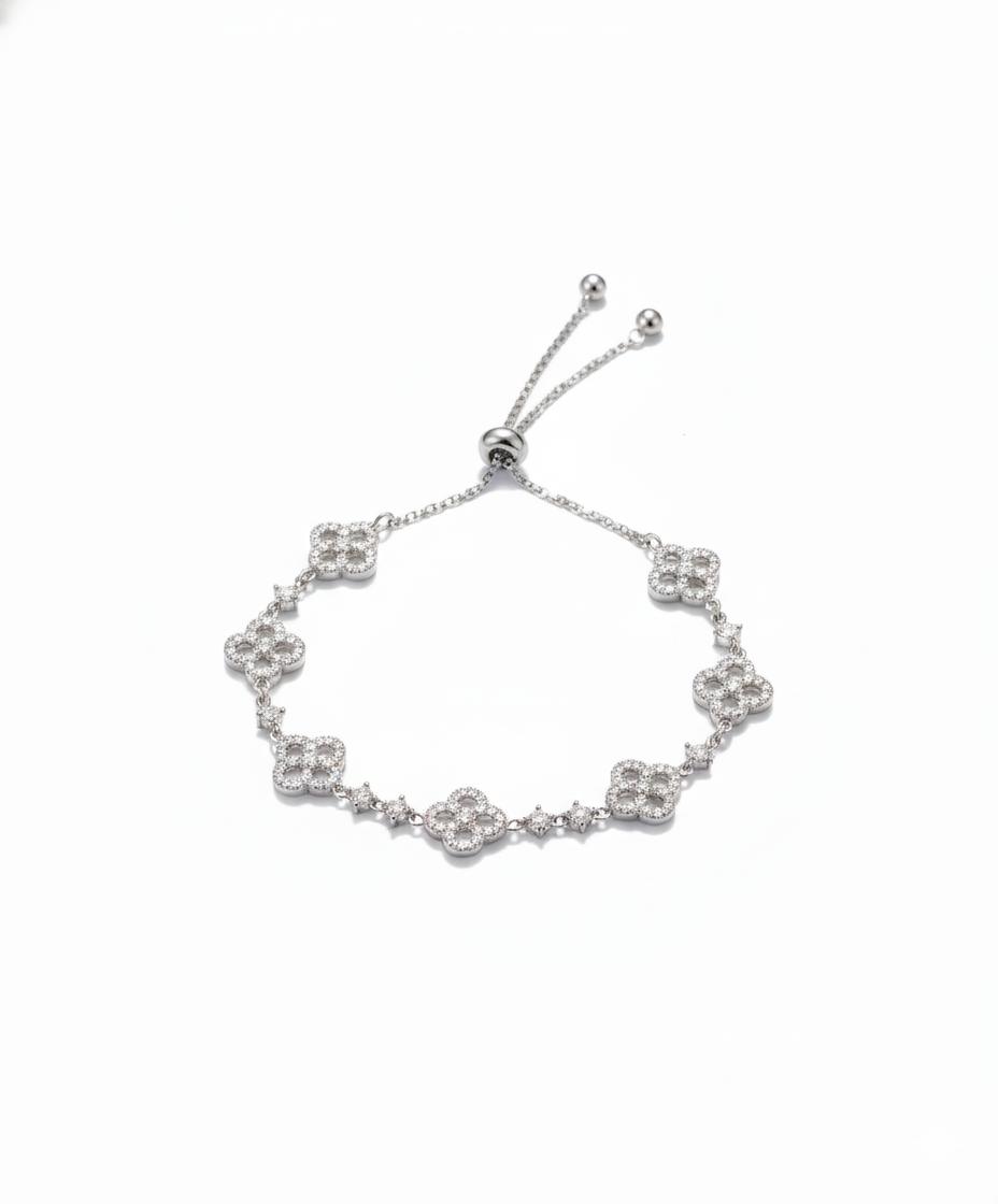 可憐な花びらをイメージしたモチーフを連ね、中心には小粒のストーンをセットした上品なブレスレット。