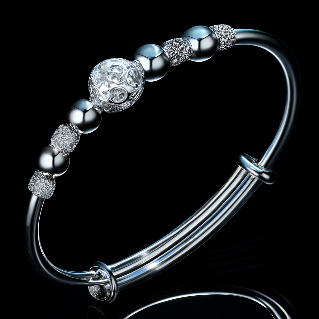 繊細な技巧とモダンな感性が融合した、ホワイトゴールド製のビーズブレスレット。