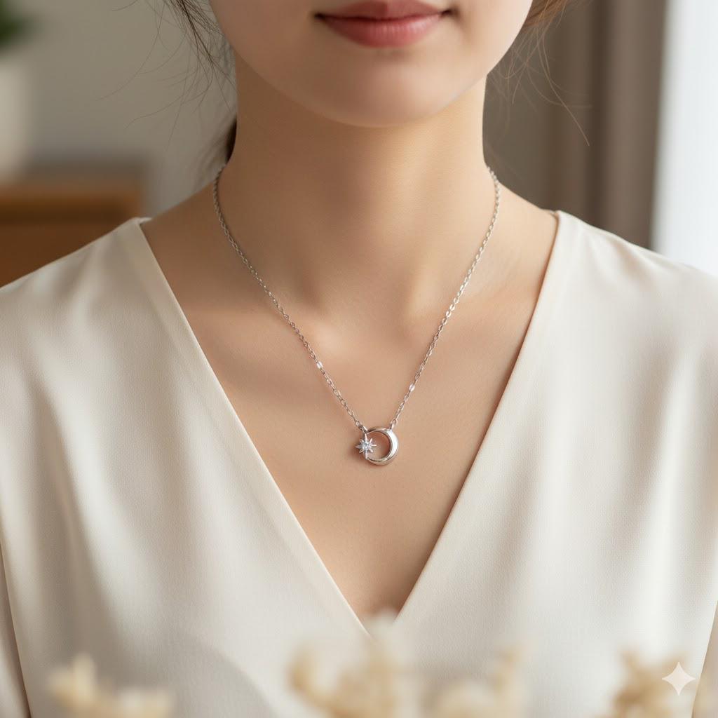 ファッションのアクセントとしてだけでなく、恋人や大切な人へのプレゼントにも最適。月と星が寄り添うようなデザインには、「永遠の絆」「見守る光」という意味が込められており、贈り物としても人気のアイテムです。
